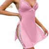 Seductive Silhouette: Accentuate your curves with this lace-trimmed nightgown featuring side slits for a sultry look. The flattering fit and front slit showcase your legs, while the hollow back design adds a touch of allure, perfect for captivating your partner's attention.