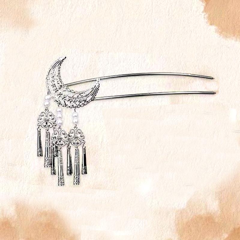 1PC U-shaped Disk Hair Hanfu Headwear Fashion Clothing Accessories Vintage Tassel Hairpin Crescent Pattern Chinese Style