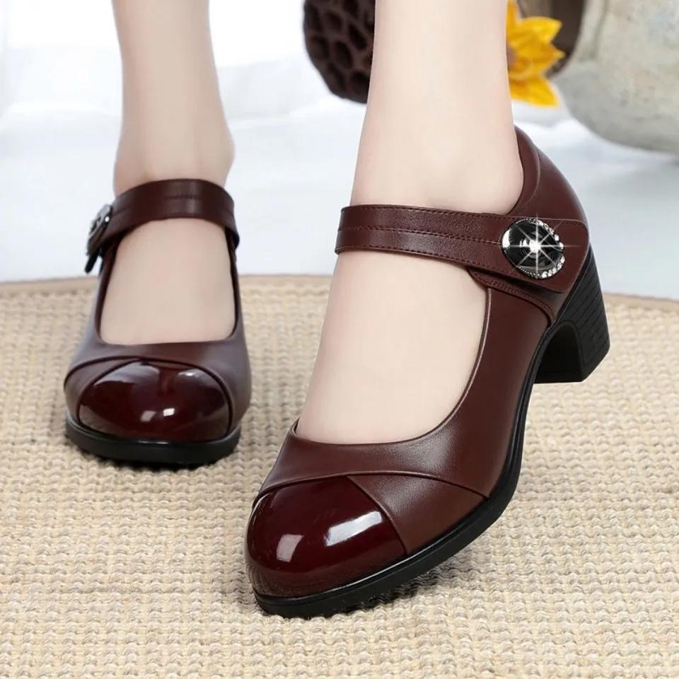 Mom's Shoes Women's Spring and Autumn Soft Sole Single Shoes Medium Heel Thick Heel Versatile Dance Shoes