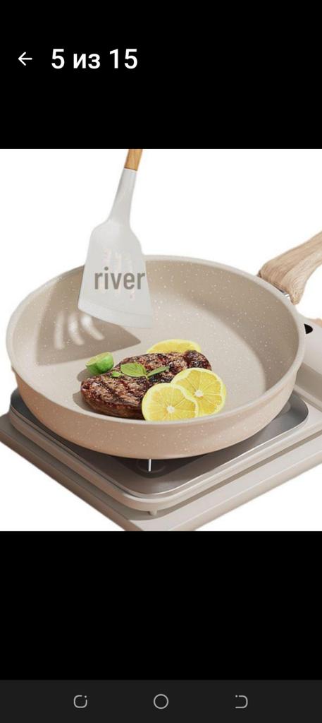 The frying pan is big and good. The bottom is wide, but I had to screw the handle on myself. I hope the frying pan will be durable in use.
