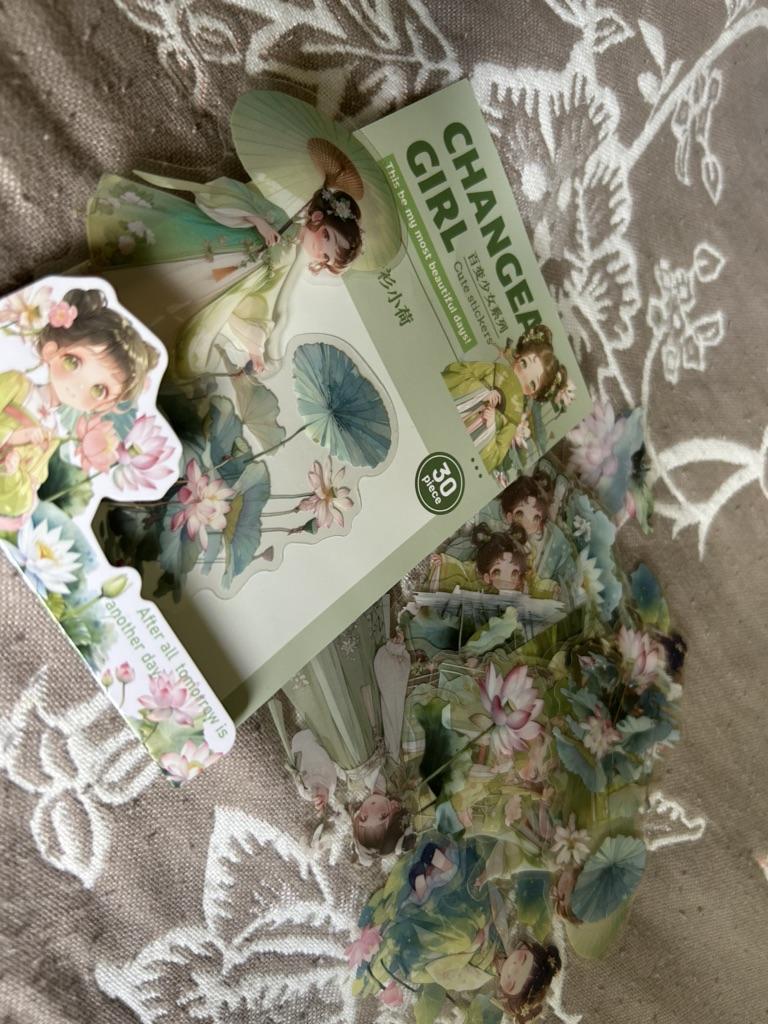 30pcs Romantic Fashionable and Cute Girl Theme Pattern PET Waterproof and Wear-resistant Collage DIY Stationery Cups Stickers