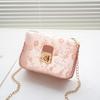 This charming cross - body bag showcases a delicate and feminine design. The body is crafted from PVC, featuring a soft pink hue adorned with a lovely floral pattern, giving it a sweet and fresh look. A gold - toned metal clasp with an intricate design is prominently placed on the front, adding a touch of elegance and luxury. The bag is equipped with a gold - toned metal chain shoulder strap that can be adjusted to different lengths, allowing for versatile carrying styles.