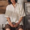 Men Casual Loose Hollow Out Short Sleeve Shirts with Pockets Retro Fashion Daily All-Match Tops Solid Color