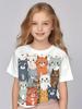 Children's Clothing Girl Cute 3D Printed Short Sleeved T-shirt Comfortable Round Neck Casual Top