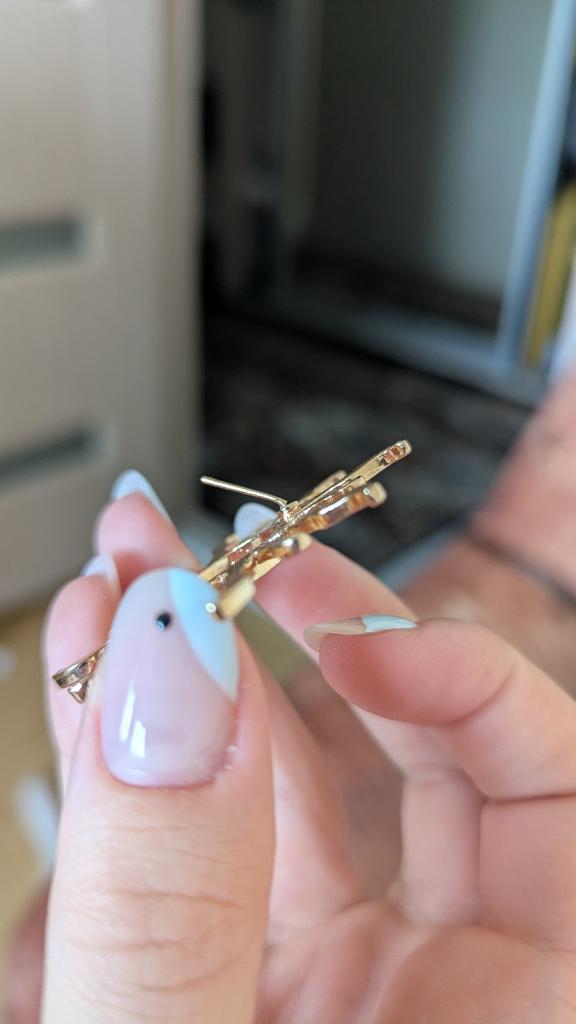 On one earring, the thing you put in the ear hole is broken.