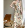 Women's Summer V-neck Halter Dress Silk Halter Dress Temperament Sexy Mid-length Dress