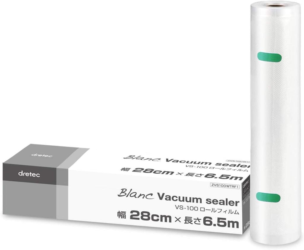Roll film for vacuum packers. Storing meat, vegetables, and fish in a vacuum pack prevents them from coming into contact with air, which slows deterioration, freezer burn, dryness, and discoloration, so they stay fresh for a long time! It is also recommended for subdividing pet food with strong odors. Size: width 28cm x length 6.5m, thickness: 0.26mm, heat resistant temperature: 100°C, cold resistant temperature: -20°C.