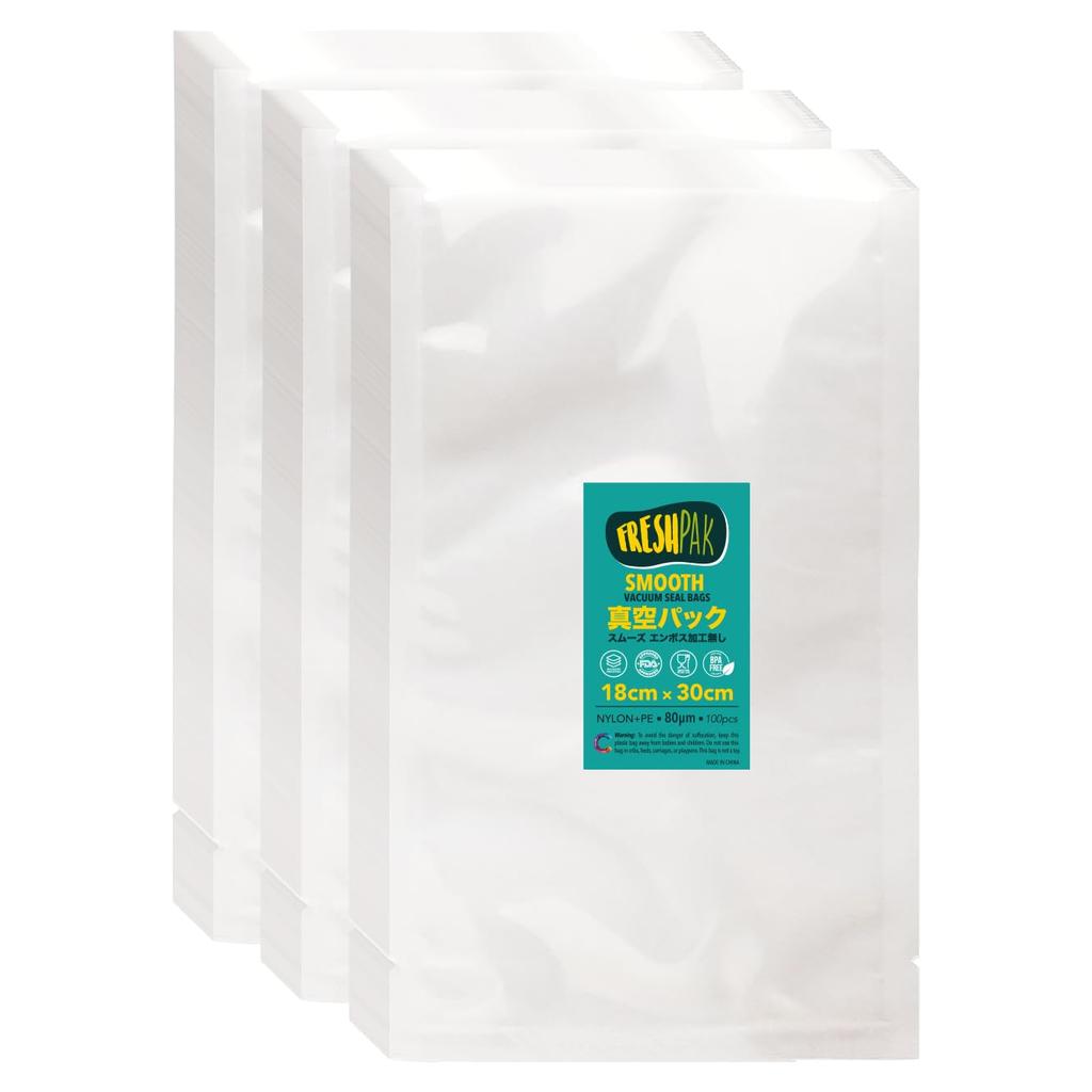 Vacuum Packing Bag Special Bag for Vacuum Packing Machine FRESHPAK Smooth No Embossed 18x30cm 3x100 Pieces Vacuum Bag High Strength 5 Side Standard