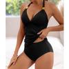 Halter V Neck Two Piece Set Tankini, Solid Color Stretchy High Cut Swimsuits, Women's Swimwear & Clothing