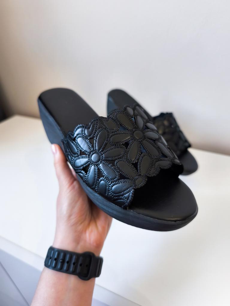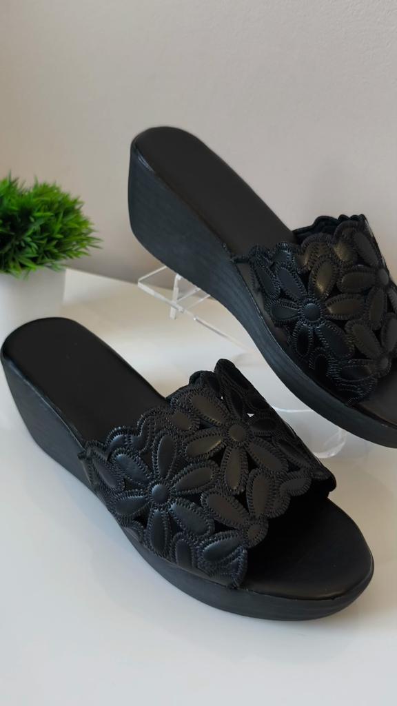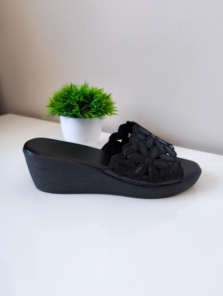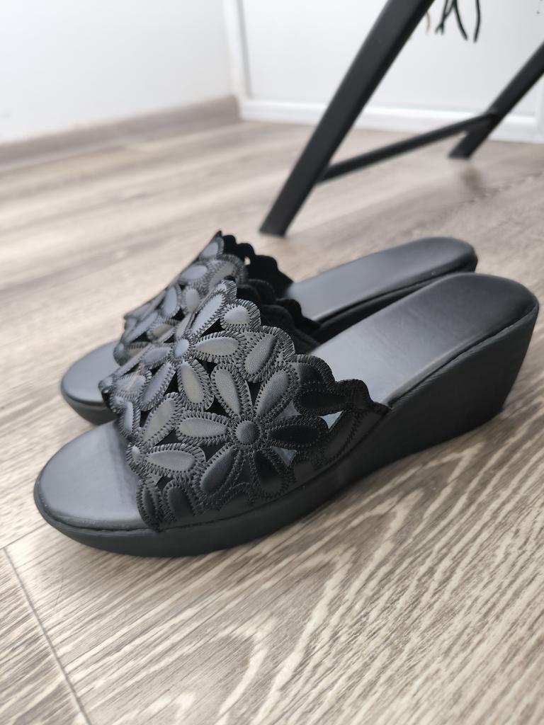 Platform Black Summer Women's Sandals PU Leather Wedges High Heel Hollow Peep Toe Female Ladies Shoes Beach Slippers Rome Style