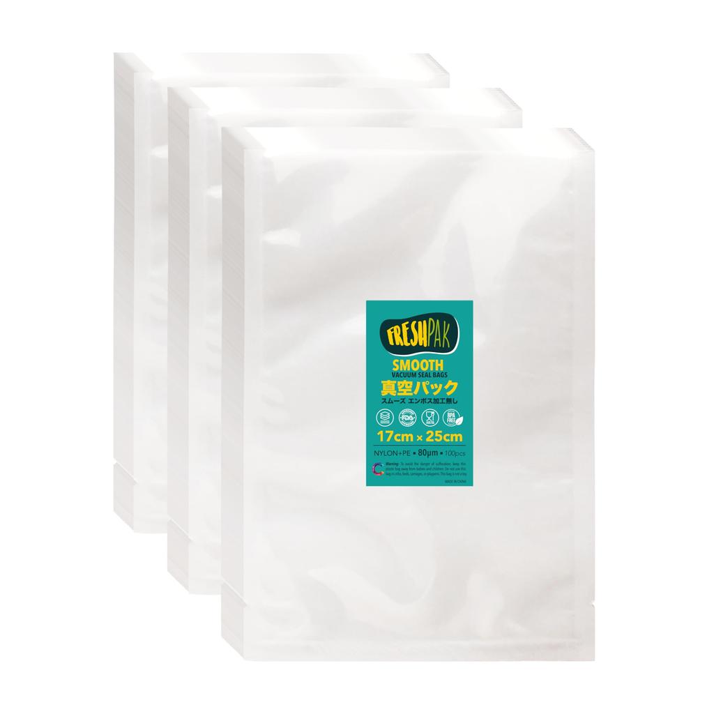 Vacuum Packing Bag Vacuum Packing Machine Bag FRESHPAK Smooth No Embossed 17x25cm 3x100 Pieces Vacuum Bag High Strength 5 Side Standard Bag Nylon Poly