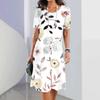 New Dress Fashion Woman Summer White 3D Printing O Neck Short Sleeve Sundresses Casual Vestidos Loose Maxi Dress