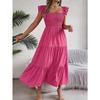 Women's Summer Square Collar Wooden Ear Edge Waist A-line Long Dress