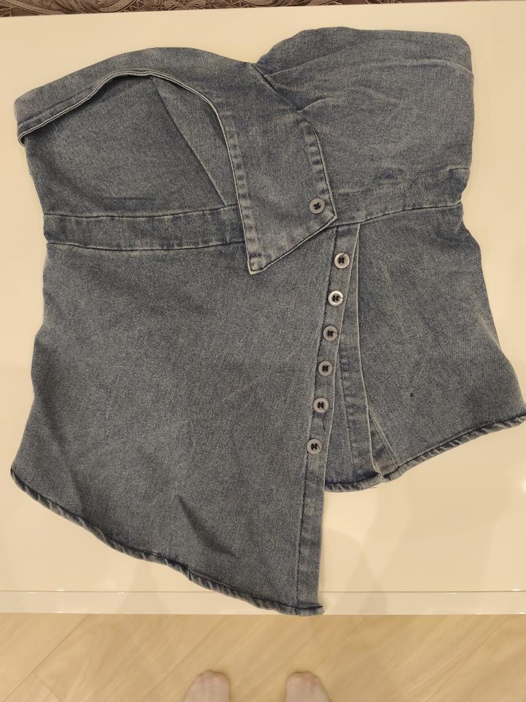 I love this denim top. It looks extremely good in reality and is very high quality. I am very delighted with it, it has become my favorite. I recommend 100%!