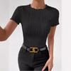 Spring and Summer New Round Neck Short Sleeve Solid Color Slim Fit Short Sleeve Irregular Vertical Stripes Ladies T-shirt