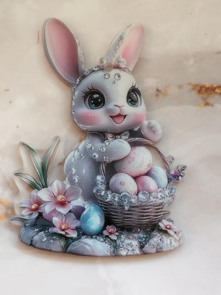 1/3Pcs Easter Cartoon Bunny Hanging Decorations with Lanyard Easy To Hang 2D Acrylic Ornaments Rearview Mirror Pendants