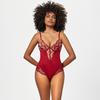 Plus Size Deep V Lace Splicing Women's Jumpsuit Lingerie Set