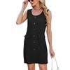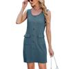 Women's Spring/summer Solid Color Crew-neck Button-pocket Sleeveless Vest Dress