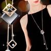 Statement Imitation Pearl Crystal Long Sweater Chain Necklace Ribbon Circle Necklace Women Vintage Pendant Collares Jewlery