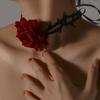 Gothic Thorny Red Rose Choker Necklace Retro Flower Adjustable Rope Collar Necklace For Halloween Cosplay Party Accessories