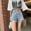 Classic and Minimalist Fashion Versatile Broken Holes Female Summer Thin High-waisted A-line Wide-legged Pants Denim Shorts Individuality Trendiness
