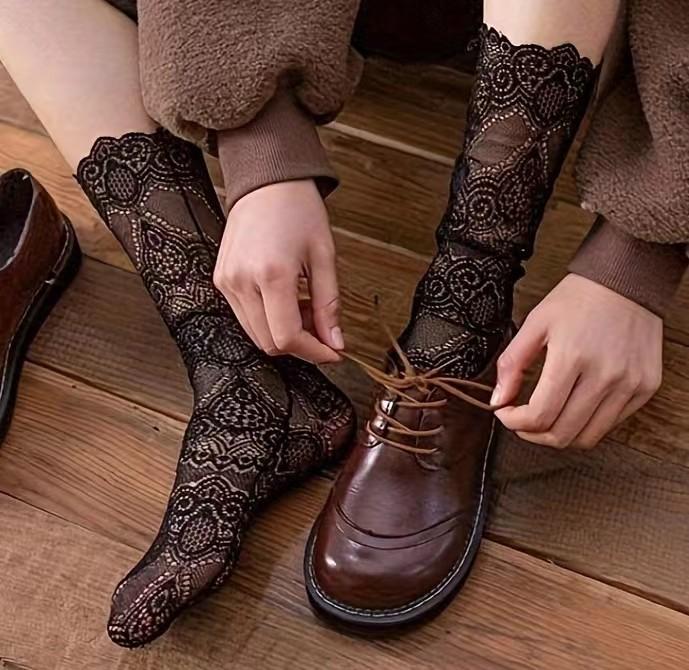 Spring and Autumn Women's Socks Peacock Pattern Lace Socks Korean Version Stacking Socks Bottom Boots Socks JK Hollow Princess Socks