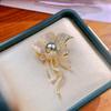 Exquisite Luxury Copper Gold-Plated Zircon Pearl Flower Brooch for Women.