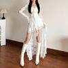 Gothic Goth Dark Fairy Lace Long Sleeve Square Neck A-line Dress Sweet Women E-girl Irregular Long Hem Partywear