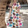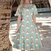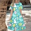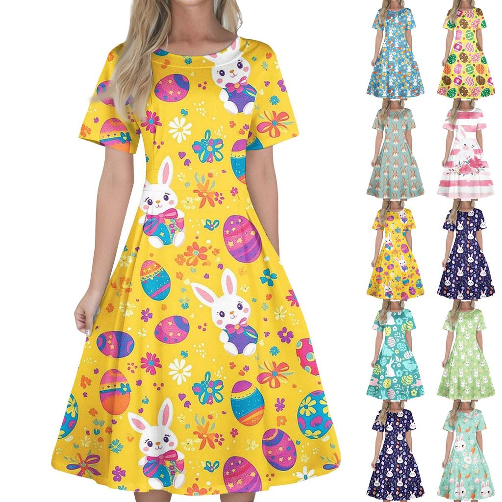 Women's Casual Fashion Dress Easter Printed Round Short Sleeve Waisted Mid-Length Swing Dress (with Zipper)