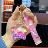 This delightful keychain pendant features an eye-catching star design crafted from durable acrylic material. The star is filled with vibrantly colored oil and adorable jelly beans that create a mesmerizing quicksand effect as they move around. This playful and unique accessory is perfect for adding a touch of fun and personality to your keys, bag, or backpack.