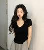 Elevate your summer style with this elegant short-sleeve top, designed to keep you cool and comfortable. Crafted from luxurious artificial silk, also known as milk silk, this top features a sophisticated solid pattern and a flattering V-neckline. The slim fit accentuates your silhouette, while the irregular hem adds a dynamic touch. Thoughtfully decorated with patchwork and quilted detailing, this top effortlessly combines comfort with contemporary style, making it a must-have addition to your seasonal wardrobe.