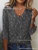 European and American Style V-Neck Knit Top with 3D Plant Pattern and Trumpet Sleeves