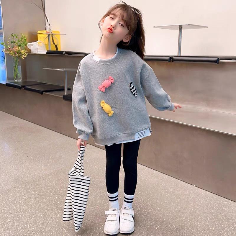 This 2024 new style gray long-sleeve sweatshirt for girls offers a wide fit, making it an ideal choice for both comfort and style. Crafted from a soft cotton blend, it's perfect for keeping cozy during the mild temperatures of spring and autumn. The versatile design ensures it's easy to pair with any outfit, making it a great addition to any young girl's wardrobe.