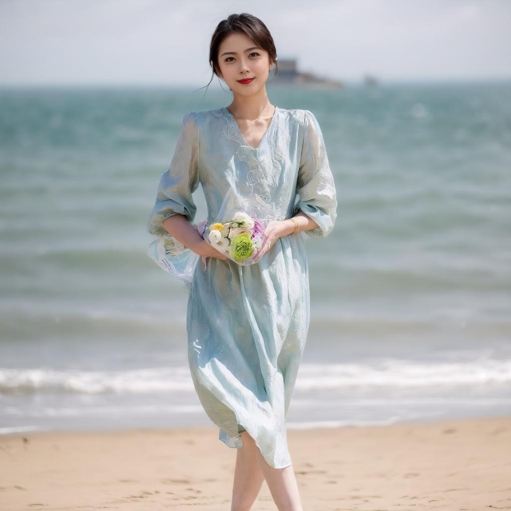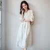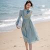 New Spring and Summer Light Luxury Jacquard A-line Skirt Spring and Autumn V-neck Waist Lace X-shaped Mid-length Dress for Women