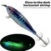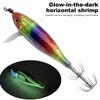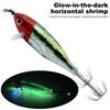 1. Luminous Night Fishing: Enhance your night fishing experience with this 5.5g horizontal wood shrimp. Its glowing effect, achieved by absorbing radiation energy from sunlight or artificial light sources, emits a persistent and bright fluorescence in the dark. This not only improves fish visibility but also attracts smaller and larger fish to feed.