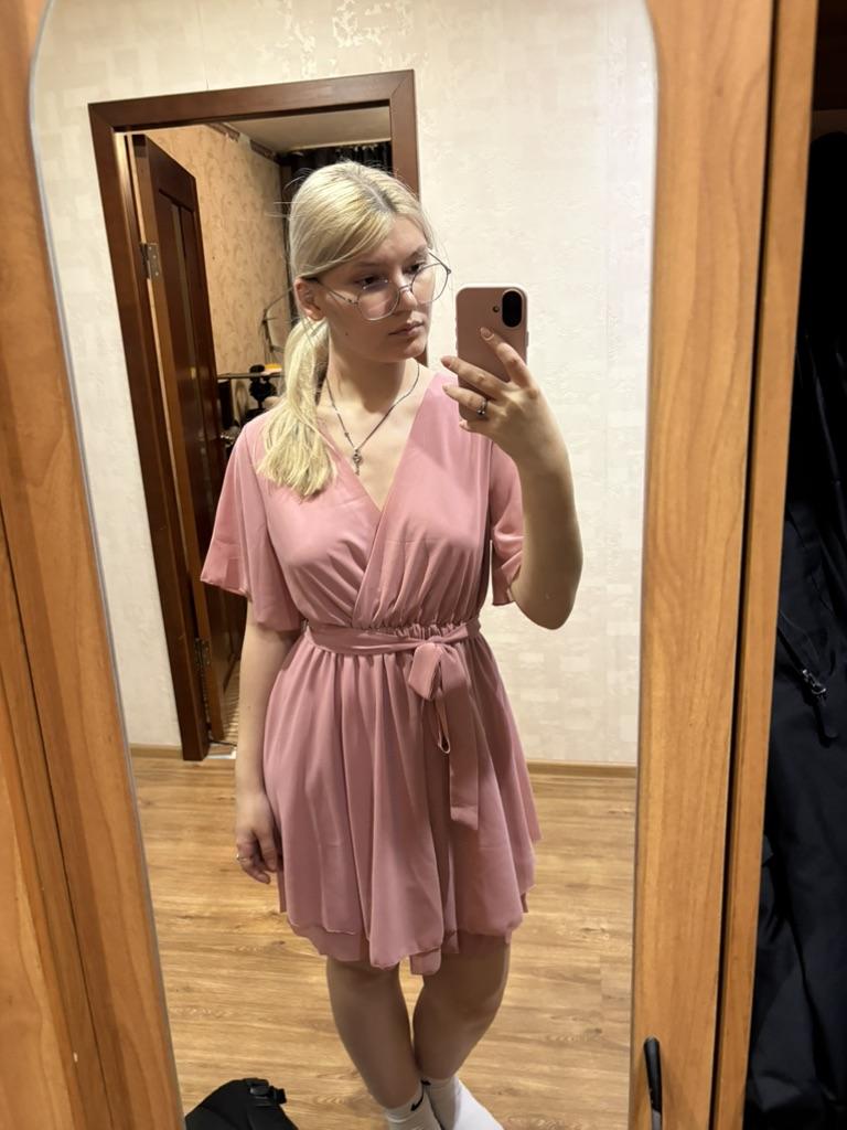 GMXIA Women's Summer Sexy V-neck Cross-strap Mini Skirt Peplum Hem Chiffon Dress