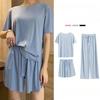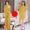 Ice Silk Pyjamas Three-Piece Set of Women's Homewear Trousers Simple Leisure and Comfortable Loose Short-Sleeved Shorts Suit