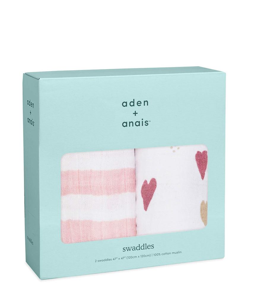 Aden Anais Swaddle Gauze Baby Genuine Product Aden Anais Swaddle Set of 2 Heart Breaker Muslin 120 X 120cm Aiden and Anai Swaddle Baby Newborn 4055 +