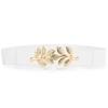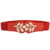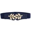 Women Belt Fashion Waist Cover Golden Leaf Elastic Waist Closure With Double Hook Buckle Wide Belts Paired With Skirt Lady Belt