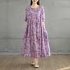 DIMANAF 2025 Women Plus Size Spring Summer Dress Casual Dress Basic Vintage Loose Floral Printing Long Sleeve Maxi