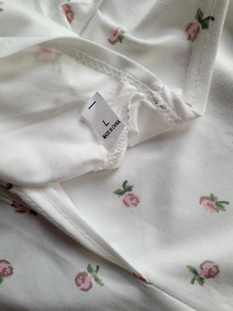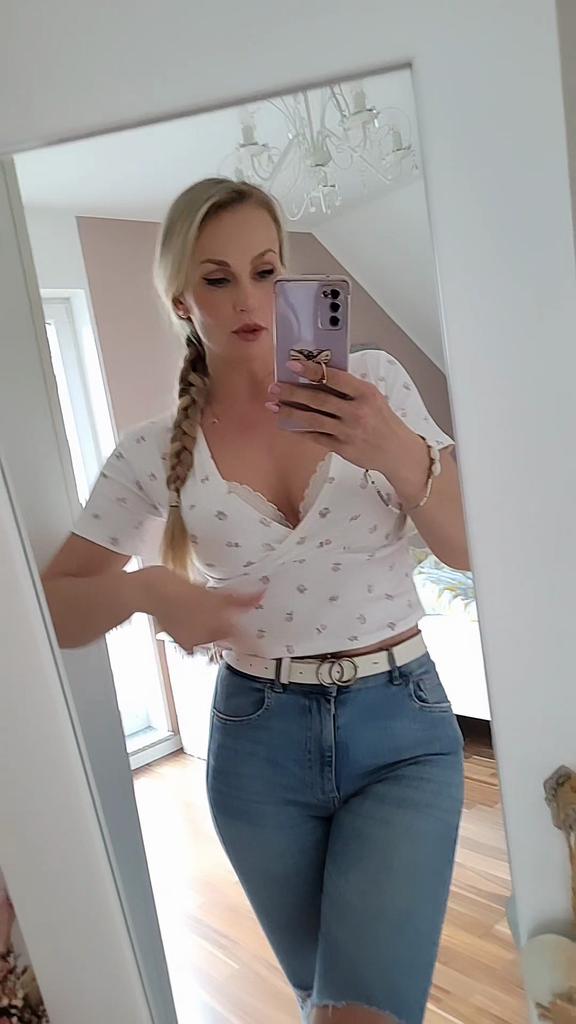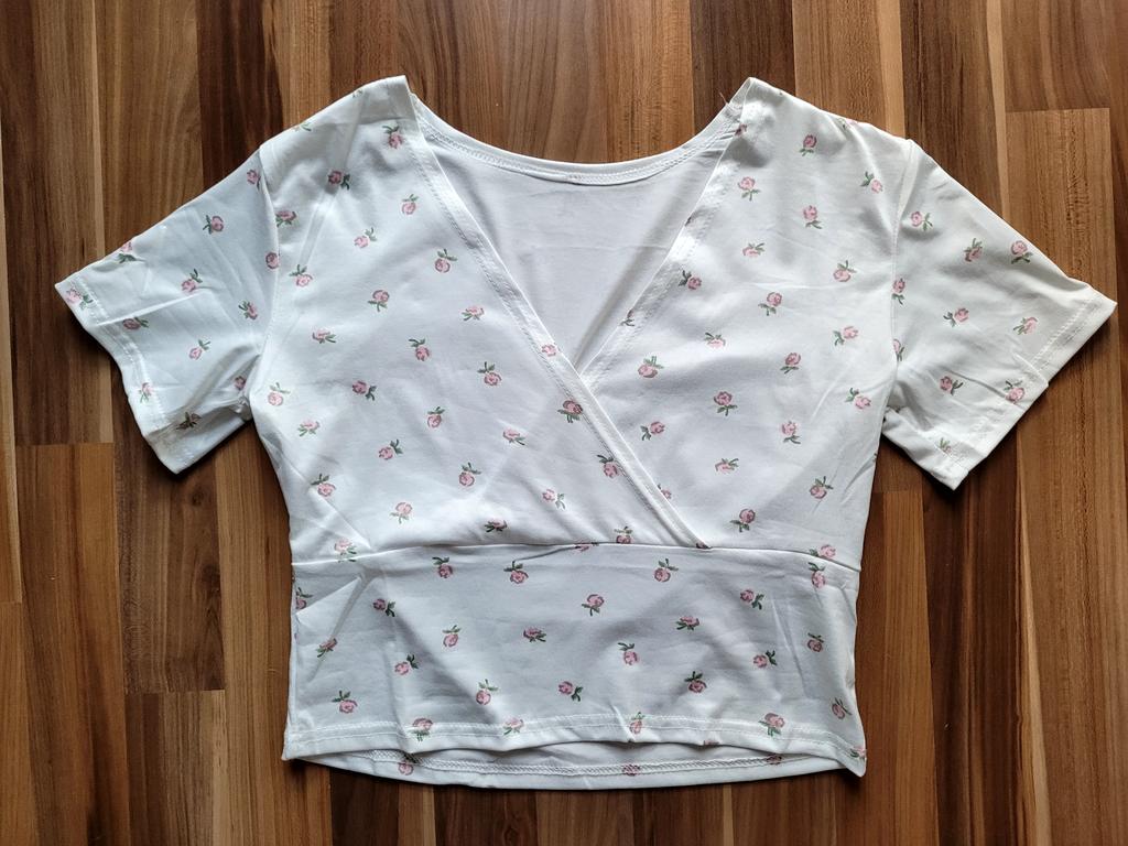 * V-neck shirt * ๐ฅ๐๐ถ๐ฒ๐ณ๐ฒ๐ฟ๐๐ฒ๐ถ๐ Exactly 2 weeks ๐ฅ๐๐ถ๐ฒ๐ณ๐ฒ๐ฟ๐๐บ๐ณ๐ฎ๐ป๐ด Included in delivery is one shirt in the corresponding color and size. It is available in 6 colors and sizes S to XXL. I ordered the dress in size L in white. It fits me quite well๐ I based my measurements on the manufacturer's measurements. They specified a chest measurement of 84 cm. Unfortunately, I find the shirt a bit too wide at the waist. My bra is peeking out at my chest... it could be a bit tighter overall.. I usually wear a size 36 to 38. I am 172 cm tall. My measurements 95-65-95 cm ๐ฅ๐ค๐๐ฎ๐น๐ถ๐รค๐ The t-shirt is NOT transparent . The fabric is very soft and perfect for summer. The V-neck is cut extra deep. The T-shirt is totally elastic. I find the length perfect for my height of 172 cm. It reaches my belly button.. For material composition : Unknown, as I couldn't find a label, but I suspect polyester ๐ฅ๐๐ฎ๐๐ถ๐ Cute light top with flowers with a very soft fabric that can be worn with high waist jeans or a high waist skirt Size L fits like M. โญโญโญโญ If my review and photos / images have helped you with your purchase decision, I would be happy if you follow me here on Joom for many more reviews to come ๐ ๐ฒ๐โค๏ธ