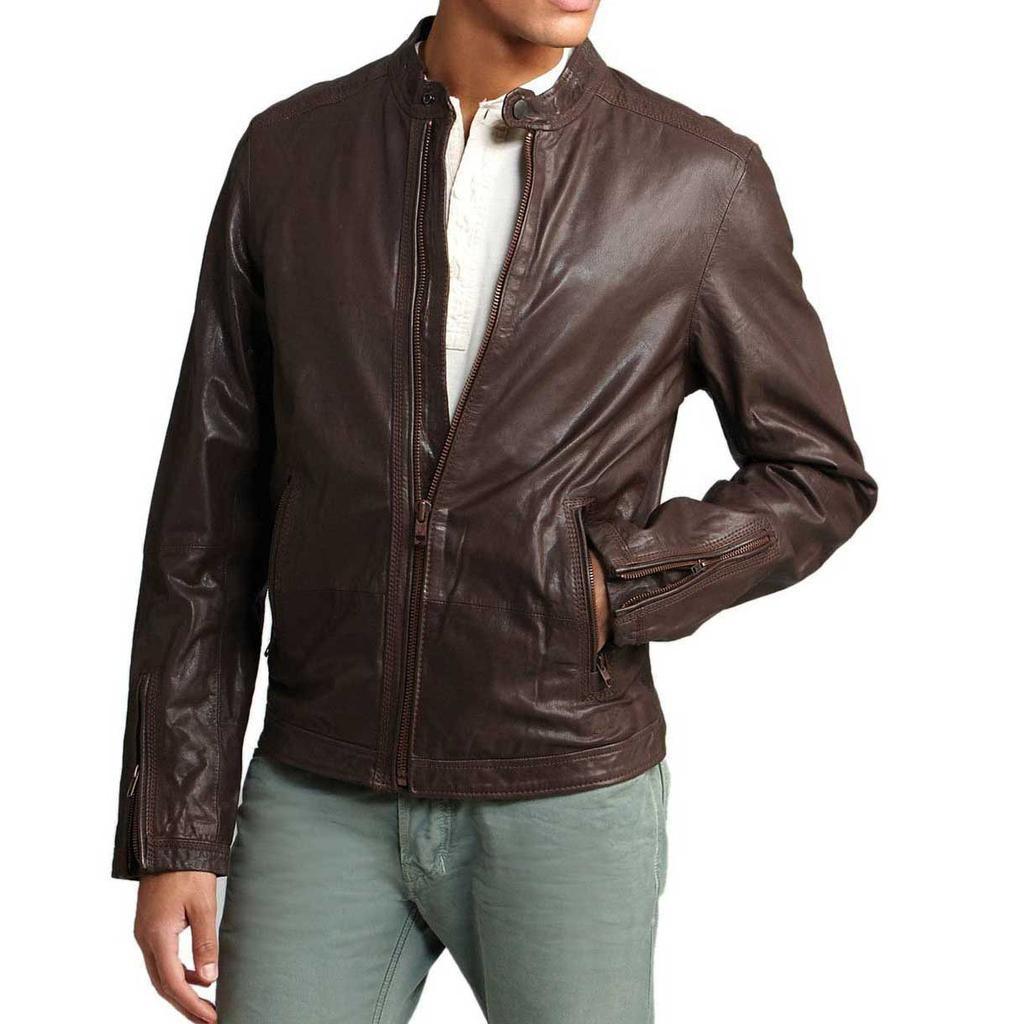 SKINOUTFIT Men's Genuine Lambskin Brown Leather Jacket Stylish Motorcycle Bomber Biker Outerwear MJ 130