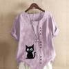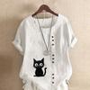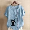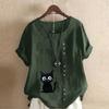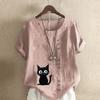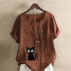 Women's Fashion Cat Prined Short Sleeve T-shirt Loose Cotton Shirt Casual Loose Summer Blouse Plus Size Tops