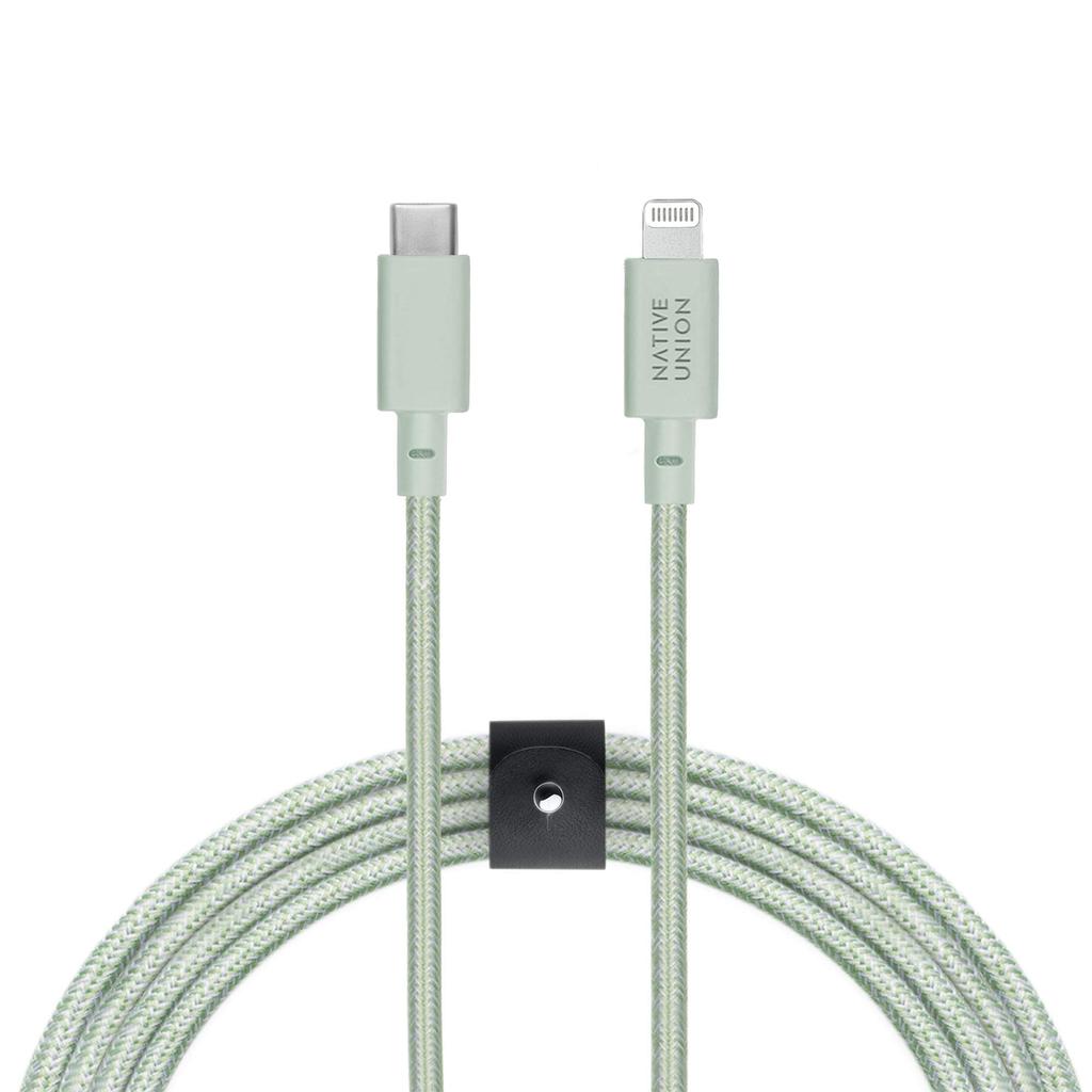 BELT Cable XL - C to Lightning USB-C A smarter way to charge. USB-C to Lightning option lets you charge & sync your iPhone or iPad with the latest MacBooks and other USB-C ports. Unparalleled Strength Improved construction features reinforced construction that's stronger and more durable than ever. Supports Power Delivery with up to 18W fast charging to get you back to power faster. Long Life BELT Cable's O-Flex strain relief design has been overhauled to provide more flexibility at the connector joint and absorb twice as much tension as regular stress relief. With a 10,000+ bend* lifespan, it's 6x stronger than standard cables and resistant to everyday wear and tear. *Based on independent bending tests. 1 song = 90 degrees clockwise + 90 degrees counterclockwise bend. Tangle-free style and smart charging. Simply wrap the 10-foot cable with the included genuine leather belt to stay organized without sacrificing style. belt along the cable