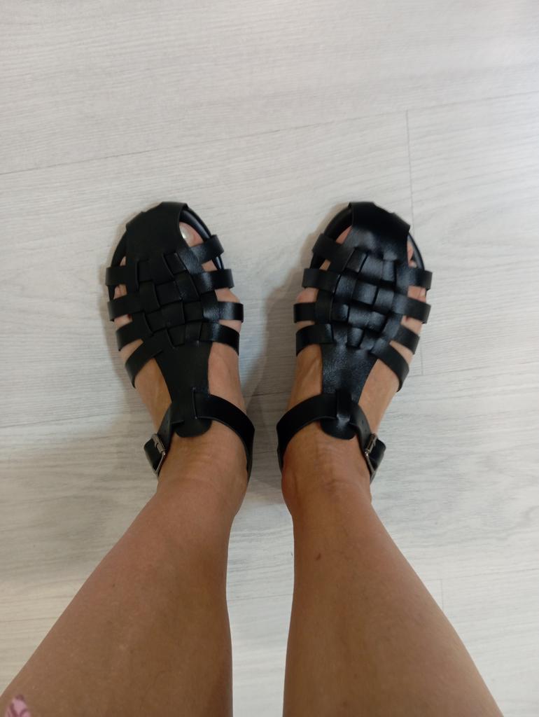 2025 New Knitted Round Headed Woven Flat Sandals Retro Solid Color Back Empty Sandals Belt Buckle