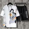Summer Tshirt Shorts 2 Pieces Set White Tracksuit Men's Letters Print Vintage Streetwear Creative Pattern Men Sets Short Outfits