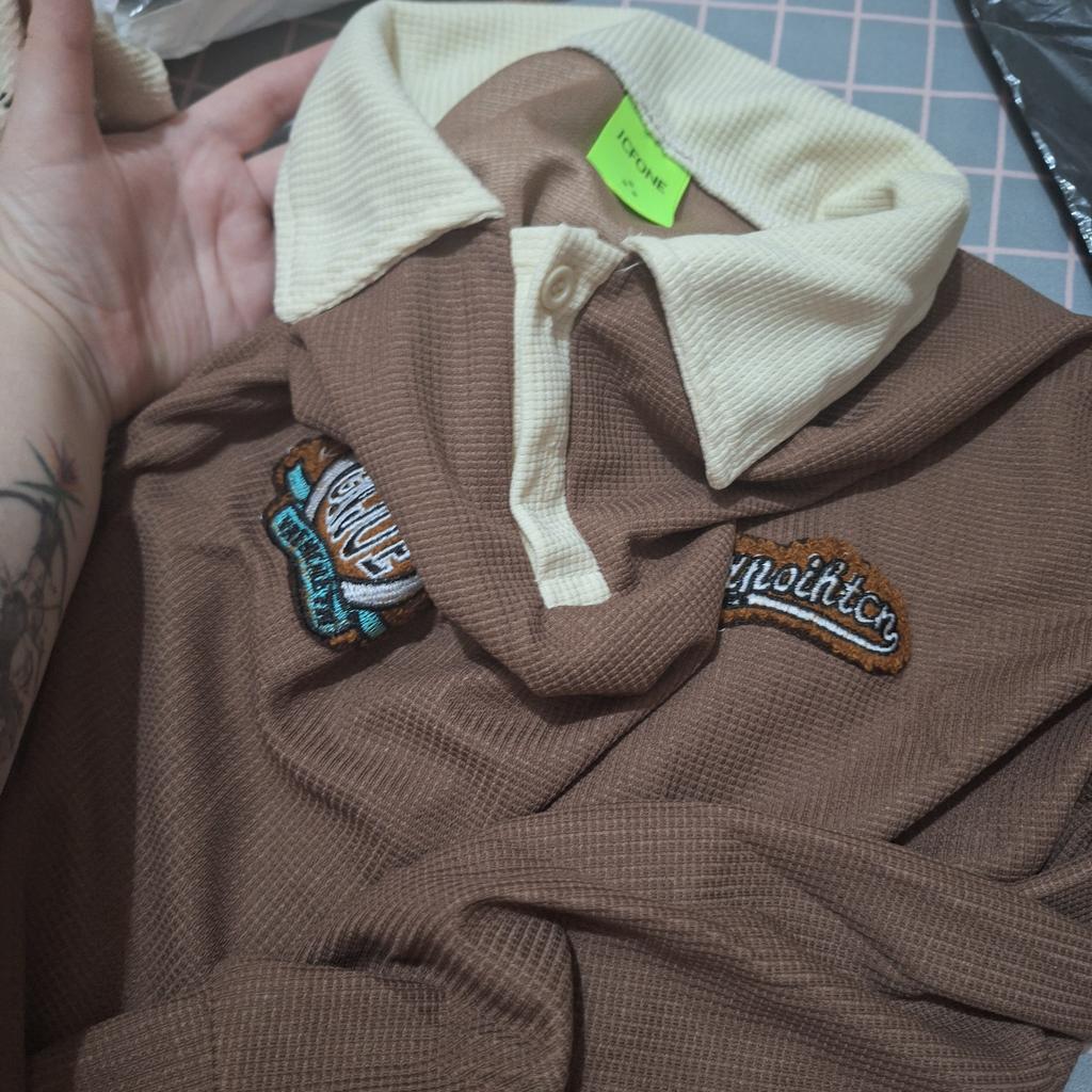 Men’s Waffle Polo Sweatshirt: Trendy Embroidered Retro Lapel, Long-Sleeve Jacket for Spring & Autumn