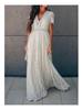 This elegant dress features a delicate lace construction that exudes timeless charm and sophistication. Designed with a flattering V-neckline and short sleeves, it combines European and American styles for a versatile look suitable for various occasions. The lightweight and breathable lace material ensures comfort, while the intricate patterns add a touch of femininity and grace to your ensemble. Perfect for both casual gatherings and more formal events, this dress is sure to become a cherished favorite in your wardrobe.