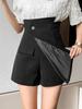 2024 Spring Women's Black High-Waist Irregular Wide-Leg A-Line Skirt Shorts