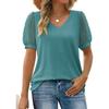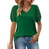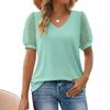 Summer Women's T-shirt Solid Color V-neck Simple Mesh Bubble Sleeves Tee Shirts